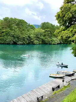 Lake Bishamon is the largest of the Goshikinuma lakes, and is the only one you can tour by boat. It offers great views of Mt. Bandai and is a great place to explore.
