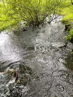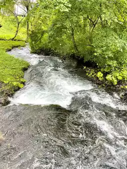 Many carp swim here, and one of them has a red heart mark on its body. It's said that finding it will bring you good fortune.