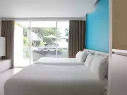 🏖️Centara Q Resort Rayong is a beautifully decorated accommodation with 2 zones: the front zone is a tall building with a 180-degree view of the sea. There is a staircase designed to be a check-in point. The other zone is a room downstairs next to the swimming pool. It is a Delux room, which the admin stayed here.