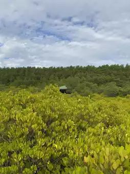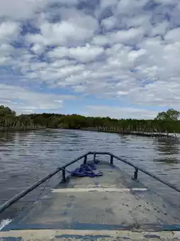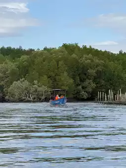 To get there, you’ll need to park your car outside the area and hop on a three-wheeled vehicle that takes you closer to the starting point. From there, the real adventure begins. The local boat ride is the highlight—it takes you through scenic mangrove forests and out to the estuary, where you can spot bats and watch crabs scuttle along the muddy banks.