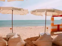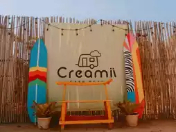 🏖️ Creamii Cafe Beach Rayong is both a place to stay and a chill cafe by the sea. You can go swimming here. It's both a place to stay and a cute cafe with a bright yellow theme.