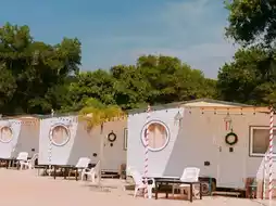 🛁 The rooms are like a camper van. We chose a Family room that can accommodate 4 people or a room for couples. It's so cool. Walk to the beach less than 100 meters.