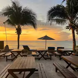 There are many types of rooms to choose from, from deluxe to royal suites. There is a swimming pool with a 180-degree view of the sea. There is also a seaside restaurant where you can eat while enjoying the view and the sound of the waves. The beach is quiet and very private, perfect for relaxation.