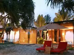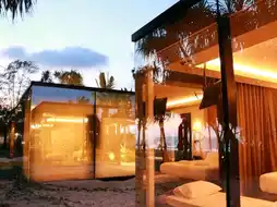 The accommodation design is a glass box, reflecting the sea. Inside, we can see the sea view from inside the room. It has a very romantic atmosphere. Sleep on a soft bed, beautiful sea view, so cool.