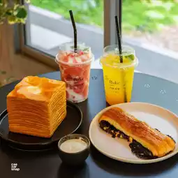 Cafe in a shady garden atmosphere Bake and More 🌿Relax amidst nature with cool drinks and a variety of food. Drinks include coffee, tea, smoothies, pearl milk tea ☕