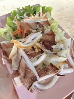 When you come to the sea, you must look for a seafood restaurant, a seafood restaurant, to eat delicious squid, shrimp, shellfish for a meal. In the Laem Mae Phim area, Klaeng District, there are many seafood restaurants next to each other, about ten restaurants. If you can't decide, don't have a regular restaurant, we recommend this restaurant, Nong Nueng Seafood.
