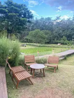 A must-visit cafe and farm in Rayong for nature and camping enthusiasts. This cozy spot is surrounded by lush greenery and features adorable animals like horses, buffaloes, and chickens. With plenty of seating options both indoors and outdoors, it's perfect for relaxing. Don't forget to stop by if you're in Rayong—there are plenty of beautiful photo spots! Enjoy a laid-back time sipping tea, coffee, and indulging in delicious pastries.