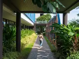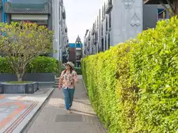 🥰 It's one of my favorite #Rayong accommodations. Just a little over 3 hours from Bangkok by car, it offers complete amenities, a shady atmosphere, and a relaxing atmosphere. The design blends Thai elements with modern touches, with a white and blue theme and wooden furniture.
