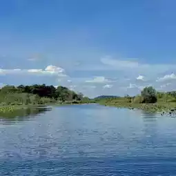 We arrived early, and the sun was still hot. We paddled halfway, so we turned back.