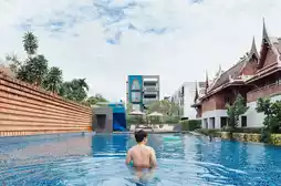 Design Ambiance: The hotel resembles a seaside art gallery, with Thai line art murals, traditional wooden houses, and modern architecture complementing each other.
