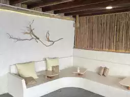 This small cafe is located by the sea at Laem Mae Phim Beach, Klaeng District, Rayong Province. The cafe features an outdoor seating area where you can enjoy the breeze and the view. They offer a wide variety of beverages, and the staff provides excellent service.