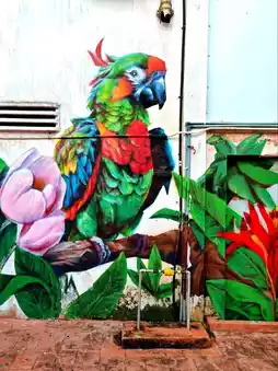 The murals stretch across several rows of shophouse back alleys — charming, colourful, and full of character, making the area an attractive place to wander around. We spent about 1.5 hours exploring the street art. Do note that the area isn’t sheltered, so it’s best to bring along hats or umbrellas if you’re visiting on a hot sunny day.