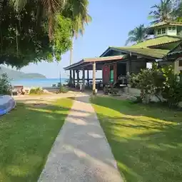 The accommodation is at the end of the island, so it is quite quiet, not many people, suitable for those who want to relax. The atmosphere is surrounded by a shady garden. In front is the sea. Sleep and listen to the waves. But if you want to go to a bar or do other activities on the island, you have to go a bit far. 🛵The accommodation has motorcycles for 350 baht each, convenient for riding. If you don't want to go out, the accommodation has food service. The taste is quite good.