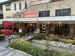 This is a Kobe beef steak restaurant located on the 1st floor of Mosaic Kobe, Japan. It is a steak restaurant that is very popular with tourists because this restaurant has the highest score in Google reviews. The restaurant has a good atmosphere with an open area for eating outside and seating inside. There is a garden and a small canal in front of the shop.