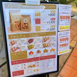 The menu in the shop is castella pastries that are freshly baked for every order. Eat with fresh whipped cream, delicious and perfect. Castella pastries can be sprinkled with toppings such as green tea powder, chocolate powder, icing sugar powder. There are also various drinks for sale.