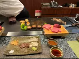 Here, they use the highest grade A5 Kobe beef, and you can choose from various cuts such as sirloin, ribeye, and fillet. The biggest attraction is that the skilled chef cooks the steak right in front of you on a teppan grill. The meat is crispy on the outside, tender on the inside, and juicy, giving a melt-in-your-mouth sensation.