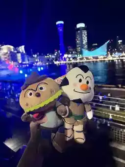 I also showed Hamburger Kid🍔 and Omusubiman🍙 the night view of Harborland🤣🏙
