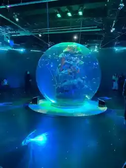 The space created by the fantastic lighting and underwater creatures is quiet, calm, and very romantic.