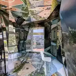 A pretty cool modern art museum located right across from the Oji Zoo. The building is a sleek white modern structure. As it showcases contemporary art, the permanent exhibition on the fourth floor is divided into two highly photogenic areas. One area features a narrow, surreal space created with geometric color blocks and eye motifs, while the other is a kaleidoscope-like observation deck made of glass mirrors—super cool! Yokoo Tadanori's greatness lies in his ability to establish a unique style across various artistic fields, earning high acclaim both domestically and internationally.