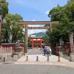 Behind the shrine is the Ikuta Forest. In the forest, there is the Ikuta Shrine's sacred tree "Kusu no Sacred Tree" that has grown for about 500 years. It is quite huge and spectacular, and you can also take a walk to enjoy the cool air.