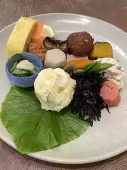 Both dishes were hearty and delicious! Nichiyosha's lunch was served on a single plate with a variety of items, allowing me to enjoy different flavors. The pasta came with bread and a drink, while the one-plate lunch included rice, miso soup, and even dessert!