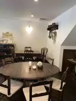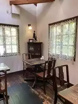 The exterior of the restaurant was surrounded by nature, giving it a stylish and cozy atmosphere.