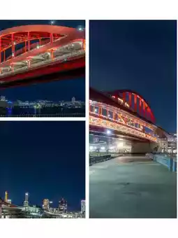 Walking from Kobe Tower to Kobe Bridge, you'll be accompanied by the sea breeze and the twinkling harbor lights. The Kobe Bridge, with its striking red arch structure spanning the harbor, is especially eye-catching at night ✨. Whether viewed from afar or up close, it's perfect for photography 📸. Visiting during twilight is highly recommended, as you can enjoy both the golden sunset and the illuminated nightscape ⛴️.