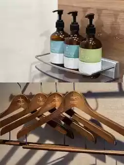 The amenities, such as cups and hangers, also have a sophisticated feel.