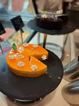 A wide variety of dishes, from appetizers to desserts, were lined up inside the restaurant, and chefs were plating the food in the central open kitchen.