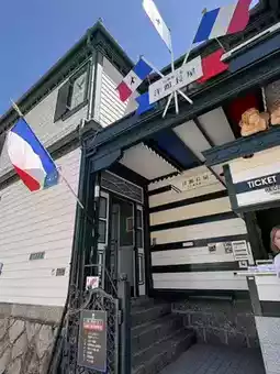 • Exterior: The white and green wooden building exudes elegance and unique charm.