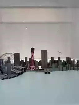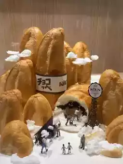 There's a large broccoli sculpture on the terrace on the fourth floor, and miniature sculptures featuring Kobe food are displayed inside two buildings.