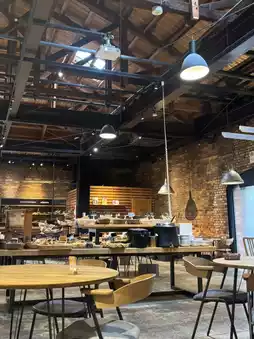This restaurant offers an all-you-can-eat bread experience with a variety of options. The bread comes in smaller sizes, allowing you to try many different types! Located inside a brick building, the interior is also stylish and charming. The lunch crowd seems to consist mostly of women. Additionally, they serve soup and curry, making it appealing for those who want to enjoy more than just bread!