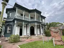 Sorakuen Garden boasts a Western-style building, built and lived in by British merchant Mr. Hassam around 1902 in Kitano-cho (a foreigner settlement). The two-story wooden structure blends Japanese and Western styles. The two gas lamps in the front yard were installed around 1874 as streetlights in the foreign settlement, a rare sight at the time.