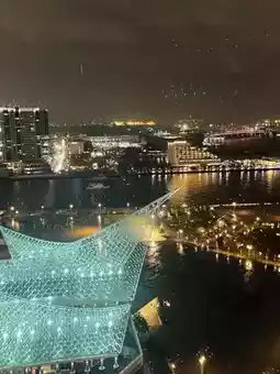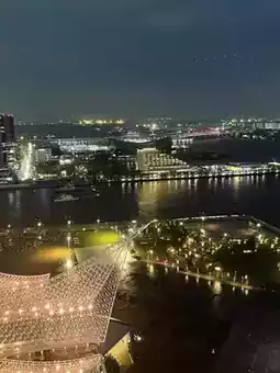 From the observation deck, you can see the Ferris wheel nearby, and the illuminated Maritime Museum is also stunning.