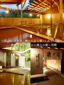 The inn also features a lounge, cafe, beauty salon, and private open-air bath, and a pool that opens in the summer.