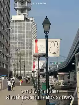 I saw a photo of a building with Miffy's face plastered on it on social media. It's so cute! • x • I wanted to visit it. Since I was in Osaka, I quickly made a surprise trip to Kobe to take a photo of the building with Miffy's face on it. From Sannomiya Station, I took the Kobe City Loop Bus 🚍, a slightly antique green bus that stops at various tourist attractions and drops you off right at Kobe Port. If you'd like to explore the city, you can take the bus around the city first and then decide where you want to go. I headed to the Port first. When I saw the red Kobe Port Tower🗼, I was ready to get off. Miffy the rabbit greeted me at every stop, so I just followed him. Downstairs, there's a small cafe selling drinks and ice cream decorated with Miffy. It was so adorable! I couldn't help but order a cone to take a photo with the red tower🍦. You can climb up to the top, where there are many restaurants and Miffy exhibitions. But because of limited time, we had to skip this part first. 😓 Our mission is to find the building in front of Miffy. Looking from the tower across to the other side of the port, you can see Miffy from afar. • x • At first, I intended to take pictures only on the tower side. But I saw reviews on social media that there was another side of the building, so I walked across. 🚶🏻♀️ The whole way was decorated with Miffy flags, making the walk not so tiring. Inside the building, there is a Chocolate Museum 🍫 which is also decorated with Miffy. You can enter. Or if you don't want to enter, you can shop for Miffy souvenirs instead. Come downstairs and you will see giant Miffy faces on both sides of the building. They are even cuter than in the pictures. It's a pleasure to look at and take pictures. 📷 There is a lawn at the back. You can buy snacks and have a picnic while chilling out while looking at Miffy's face. 🌿 After taking as many pictures as you want, it's time to wave goodbye... Next, Yokohama Port x Dick Bruna. I hope I will have the chance to take more pictures for you to see. 🥺