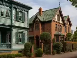 The red-roofed "Kazamidori Mansion" is a prime example,