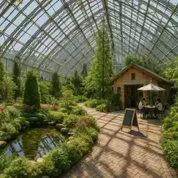The gentle scent of herbs wafts through the air, and the glass greenhouse and small cafe are perfect for a leisurely rest.