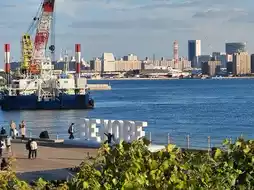 American Park is located near the harbor of Kobe facing the sea. The park is open opposite the moored ships and the iconic landmark English word Kobe BE KOBE.