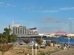 There are also some characteristic buildings in the park, such as two large hotels, one nearly semi-oval, one towering into the clouds, and Kobe Port Tower intertwined very modern .