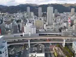 Soaring above Kobe Tower, the charm of this coastal city unfolds in its entirety. The layered urban architecture stretches toward the mountains, where modern high-rises blend with densely packed residential areas, showcasing the city's vibrant energy. Below lies the bustling port of Kobe—the colorful Ferris wheel at Mosaic Plaza, yachts docked along the marina, and the expansive sea view create a lively scene. In the distance, the Rokko Mountains form a majestic backdrop, lending grandeur to the cityscape. With the sea merging into the sky, urban development and natural beauty coexist in harmony, painting a captivating portrait of the city.