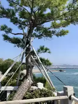 A stunning scenic spot where the green of the pine trees and the deep blue sea blend together in harmony