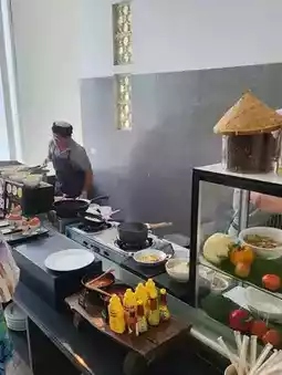 It was an egg omelet and rice noodle corner. There are boiled eggs ~ fried eggs too. There are different types of bread