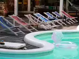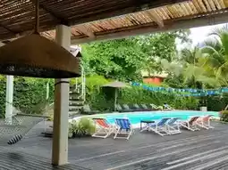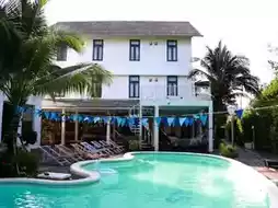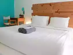 🏨Pajamas Koh Chang 🛖A super cool hostel in Balinese style, decorated in white tones contrasting with various colors according to the room type. There is a swimming pool in the middle with a chill atmosphere. It is located not far from Klong Prao Beach, Koh Chang, and you can walk to the sea. 🏖