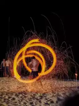 "Experience the thrill of a breathtaking Fire Staff Show on the beautiful island of Koh Chang. Watch as skilled performers twirl and spin blazing fire staffs, creating mesmerizing trails of light against the night sky. This exciting, high-energy performance combines artistry, agility, and daring feats, making it a must-see attraction for anyone visiting the island. Don't miss this unforgettable spectacle of fire and skill!"#fire #show
