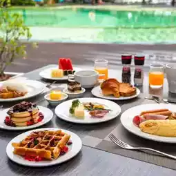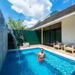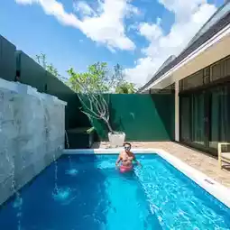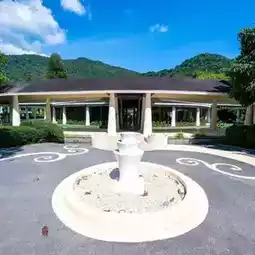 We really like the swimming pool here Because you will see both the sea and the mountains.