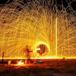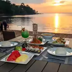 Dinner in the evening, sip cocktails, watch the sunset and watch the fire baton show, very impressive