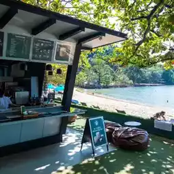 Turn right on Koh Chang and drive straight ahead. The hotel is located before Bang Bao, at Ao Bai Lan.