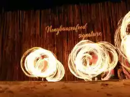 🏖️Nong Bua Seafood restaurant has delicious food, a variety of menus, affordable prices, and a pavilion where you can sit and watch the fire twirling show up close. The atmosphere is great! 🌋