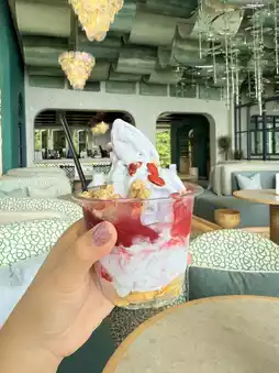 Just walking into the shop will melt your heart because the shop is decorated in a minimalist tone. There are many cute corners, such as a mirror corner, a tree corner, a wooden chair corner. You can take pictures anywhere you sit. Cafe hopping lovers will definitely love it. 📸